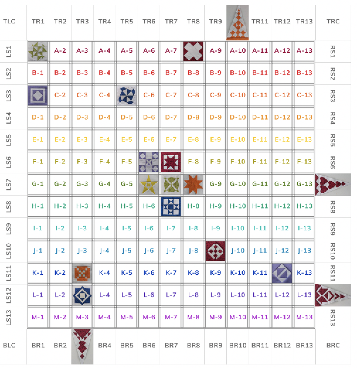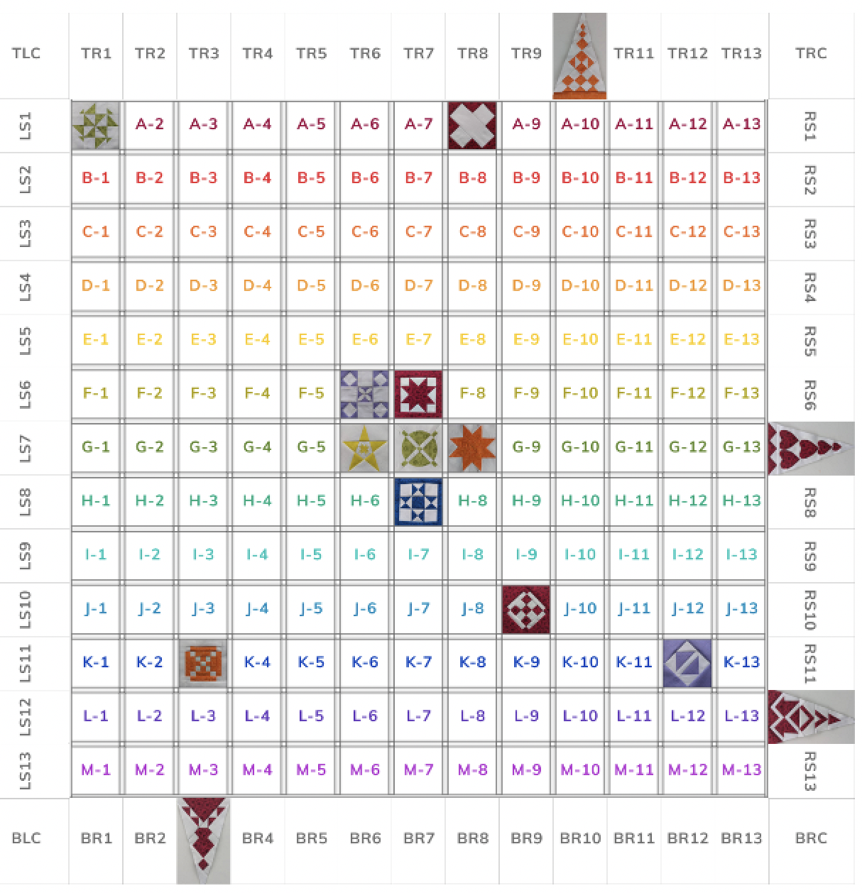 This is Week 6 of the Dear Jane Stitch Along, and this group is continuing to work from the centre of the quilt top out. I was looking for a colour that would work next to the red and yellow, that I hadn’t used before. This purple may be a little light in tone, but I think it will work well as I add more blocks scattered throughout the layout.