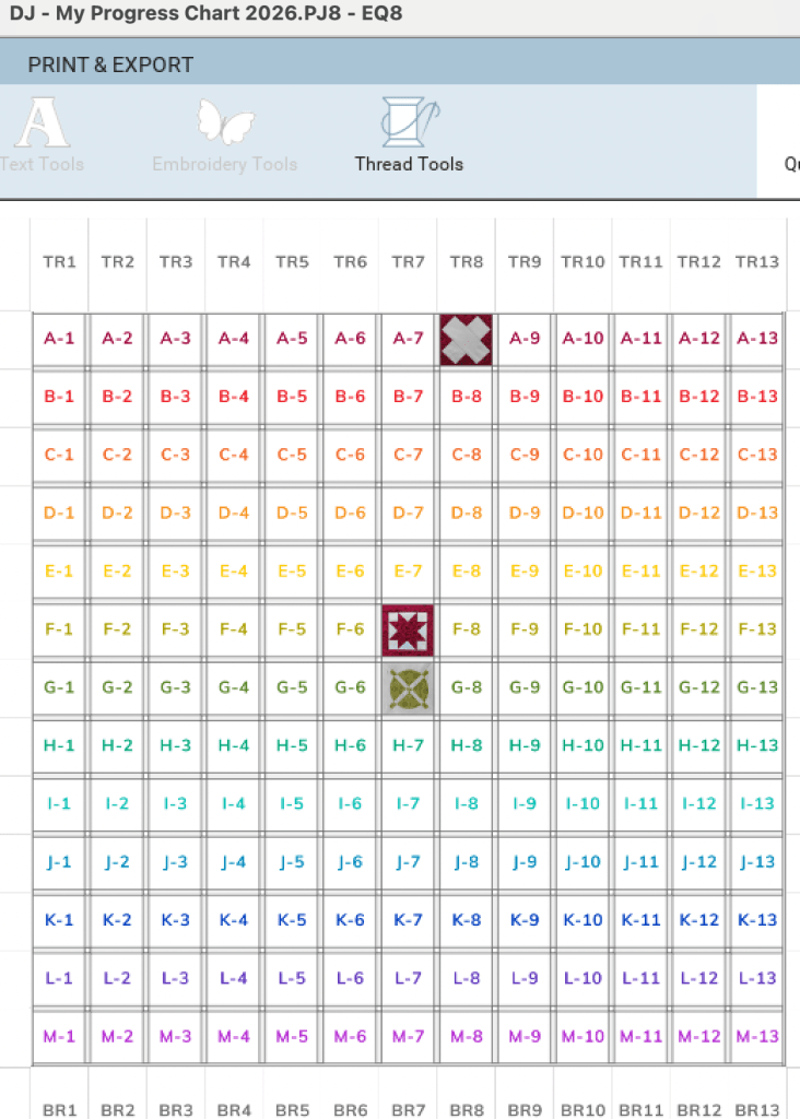 This block confirmed my decision to favour Foundation Paper Piecing. Except for the last three borders, it was all constructed using a printout from EQ8.