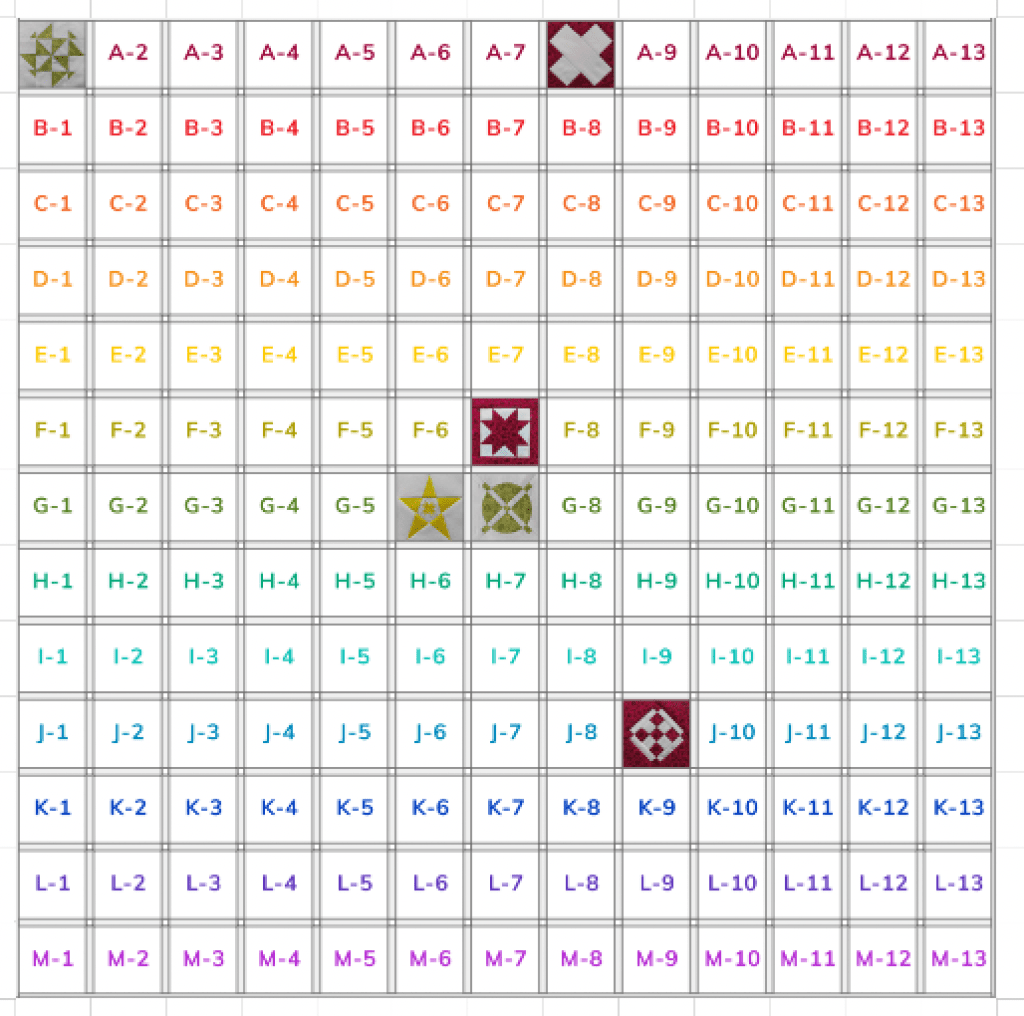 - Finished just a few threads smaller than 5″, so will sit nicely with the sashing in the final quilt