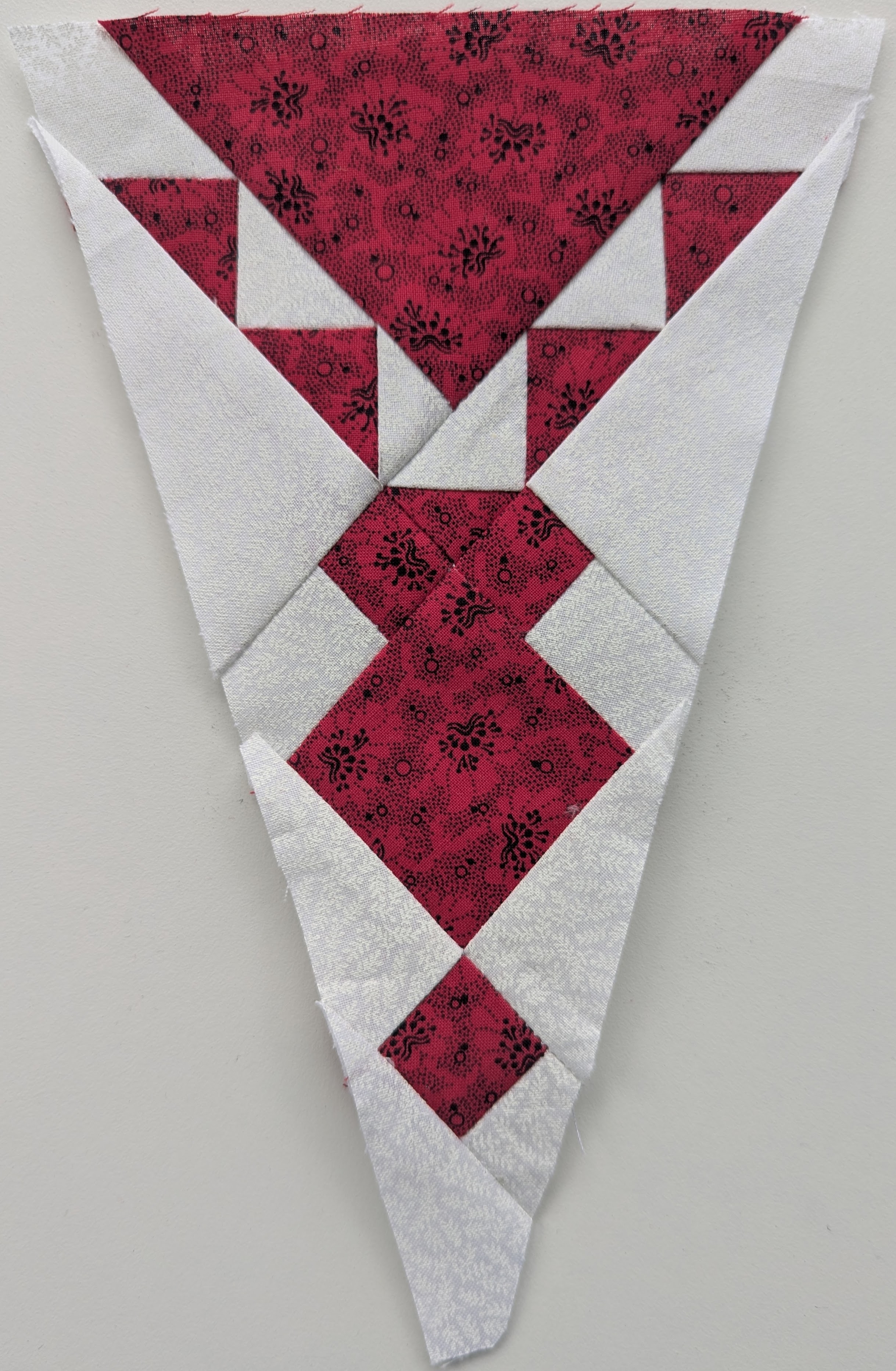 Here’s the new look of the quilt, with one border triangle added: